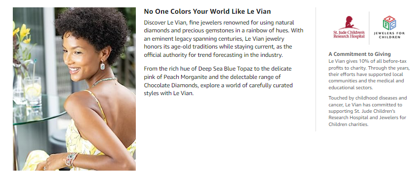 Le Vian is committed to giving back 10% of before-tax profits to charity. The company is involved in a variety of causes, including supporting local communities and medical charities, and building schools in the areas where the diamonds are mined. Le Vian is also one of the largest supporters of Jewelers for Children, which helps children in need. It is this sense of integrity, responsibility, and giving back — and a passion that has lasted through the generations — that translates into the way Le Vian conducts business.