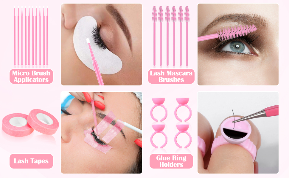【Perfect Eyelash Extension Starters Kit】Straight lash tweezers are used to isolate natural lashes or pick up individual lashes.Curved lash tweezers are suitable for picking up big premade fans and easy fan volume lashes. Glue-hold rings and disposable mascara wands can make it convenient to dip glue in the process, eye gel pads can protect fragile skin around your eyes from lashes sticking. The lash tape is made non-woven, lint-free, easy to tear and can protect the fragile skin around the eyes.