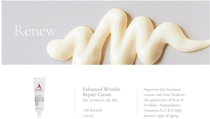 ALPHA SKIN CARE, Naturally powerful anti-aging formulas for real results to reveal younger-looking skin now. We have a rich history of offering products that deliver high quality and proven results. Our skin and hair care products are embraced and respected by both consumers and medical professionals. ANTI-AGING DAILY ROUTINE: Following an effective anti-aging skin care routine promotes cellular turnover and skin renewal to achieve a balanced, glowing complexion. Our four step routine - cleanse, renew, moisturize and protect – is clinically proven to reduce the appearance of lines and wrinkles and fade dark spots caused by aging and sun exposure. CLEANSE: A cleanser is the most basic step in any skin care routine. Our face wash and toner naturally cleanse the skin and restore ideal pH levels to reveal a fresh, soft complexion. RENEW: Lifting away dull, dead skin cells is key to renewal. Our anti-aging products gently polish skin, allowing ingredients to quickly penetrate so new healthy skin can emerge. MOISTURIZE: A daily moisturizer helps to nourish and improve your skin’s health. Our moisturizers hydrate your skin quickly, leaving it feeling smooth and refreshed for hours. Create your healthiest skin ever with our naturally powerful ingredients.