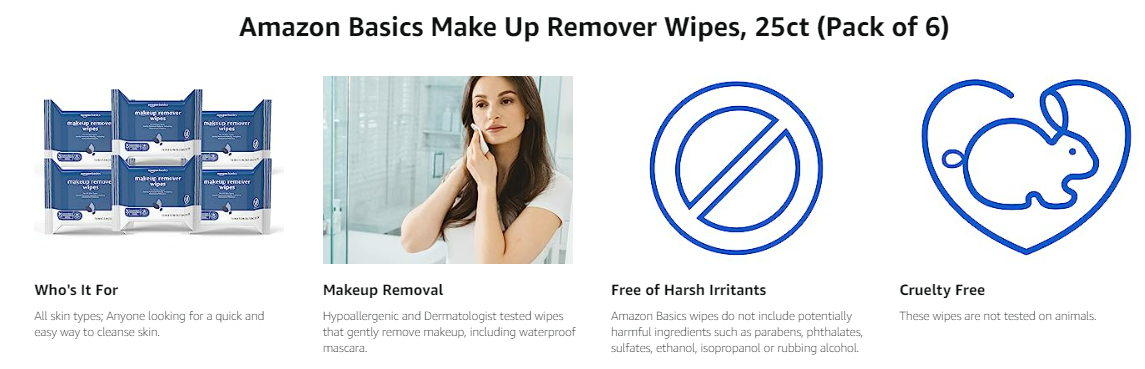 Alexa voice shopping enabled: to place your next order, just say, “Alexa, reorder Amazon Basics Makeup Remover Wipes"