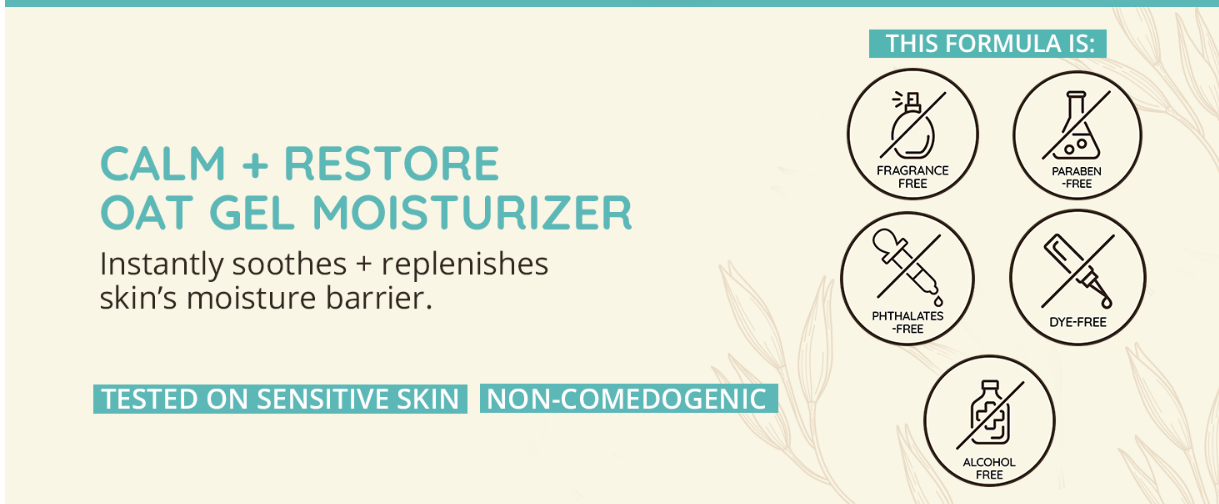 Nourish your sensitive, irritated, dry skin with Aveeno Calm plus Restore Oat Gel Facial Moisturizer. Tested to be gentle on sensitive skin, this lightweight gel cream from a dermatologist-recommended skincare brand instantly soothes irritated, dry skin, replenishes its moisture barrier while strengthening skin's moisture barrier for long-term resilience. The hydrating gel cream continues to moisturize for 24 hours so even sensitive skin feels comfortable all day. Prebiotic oat helps soothe dryness and nourishes skin's natural moisture barrier while feverfew calms. The hypoallergenic, non-comedogenic formula is free of fragrances, parabens, alcohol, dyes and phthalates and is non-greasy. Twice daily, massage the gel moisturizer directly onto face using an upward and outward motion.
