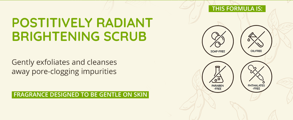 Gently buff away surface impurities, dead skin & oil for softer, brighter, more even-toned skin with Aveeno Positively Radiant Skin Brightening & Exfoliating Daily Face Scrub. It gently exfoliates skin & helps improve skin's tone & texture & reveals radiant-looking skin. This scrub leaves skin looking smooth & feeling refreshed & makes skin feel silky after 1 day. The soap-free & oil-free formula combines moisture-rich soy extract with naturally derived granules to exfoliate & cleanse away dirt, oil, & bacteria. This cleanser is hypoallergenic, non-comedogenic & gentle enough for sensitive skin & everyday use in a regular beauty or skincare routine. From a dermatologist recommended skin care brand, the Positively Radiant collection is designed to help improve skin tone & texture & reveal radiant-looking skin to give you a lit-from-within glow. With soy extract, it targets skin tone & texture. To use, moisten face & gently massage scrub in circular motion. Rinse thoroughly & pat dry.