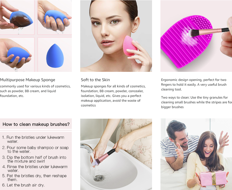 4 makeup sponges blender is a bonus for the application of powder, bronzer, contour, shading, etc.