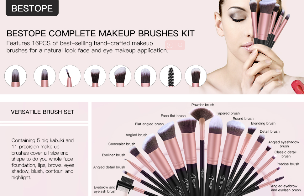 16 pcs full makeup brush set meeting all demands for your fantasy looks.