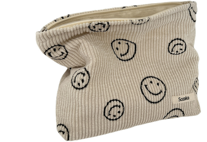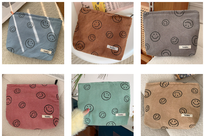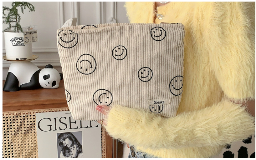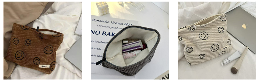 Cosmetic Bags for Women - Corduroy Cosmetic Bag Aesthetic Women Handbags Purses Smile Dots Makeup Organizer Storage Makeup Bag Girls Pencil Case Bags (Beige)(6769)