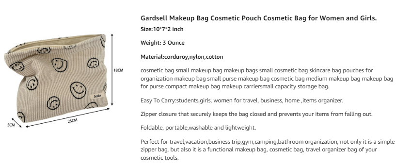 【Perfect Size and Large Capacity】 Dimension: 9.8inch/25cm (L)* 7.01inch/18cm(H). Portable and large capacity.It is easy to store small items, makeup brush, etc, to make your daily make-up, eyebrows, eyeliner, cream, lipstick, perfume and other beauty things organized and protected.