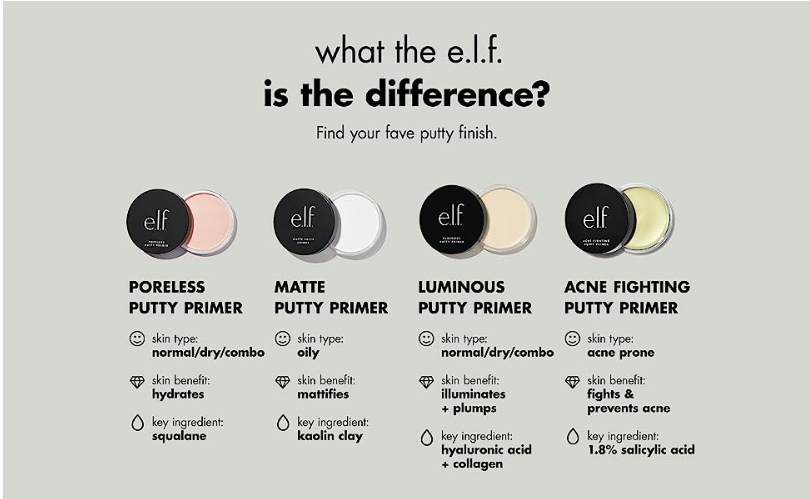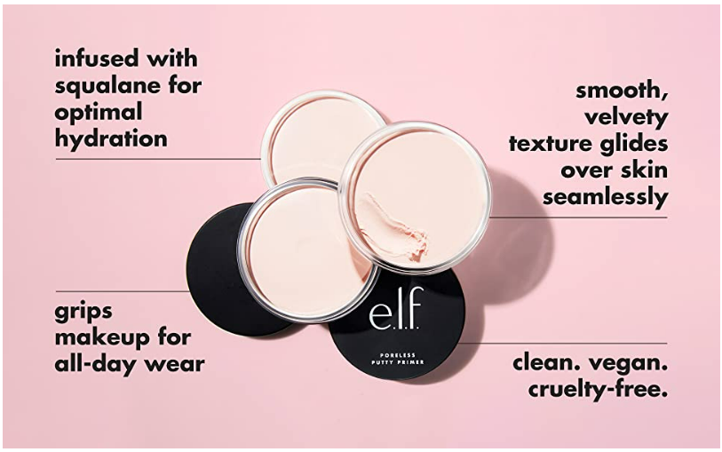 e.l.f. Poreless Putty Primer, Silky, Skin-Perfecting, Lightweight, Long Lasting, Smooths, Hydrates, Minimizes Pores, Flawless Base, All-Day Wear, Flawless Finish, Ideal for All Skin Types, 0.74 Fl Oz(6784)