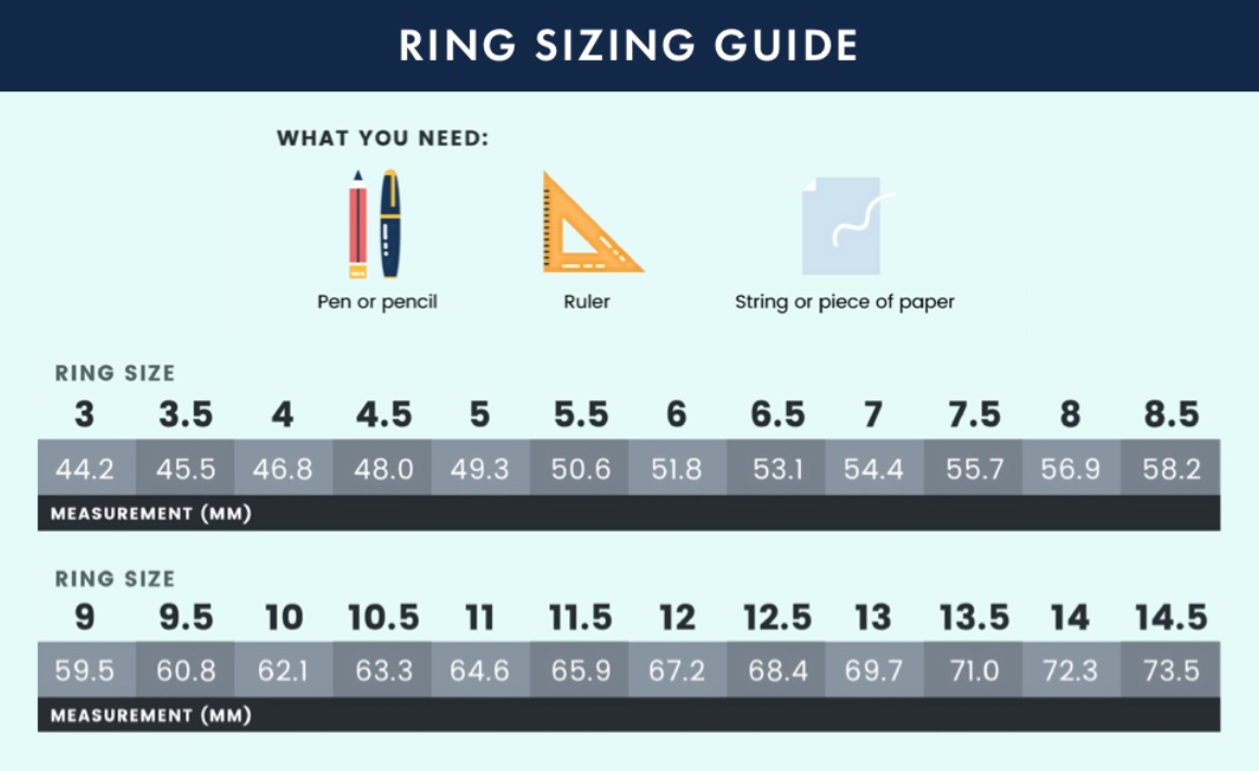 5. Use the chart above to find the corresponding ring size in the top row