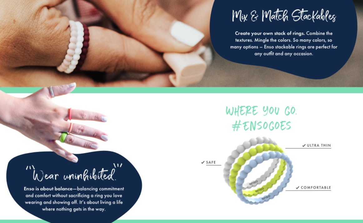 Enso Rings are the most stylish, versatile silicone rings and silicone wedding bands on the planet! If you have an active lifestyle, or if you work with your hands for a living, then you know traditional metal bands and unique wedding rings get in the way of just about everything! Hard, metal bands jack your hands up when you’re lifting, doing pull-ups, climbing, or pretty much anything involving your hands. We created Enso Rings because we’d finally had enough of losing our wedding rings, getting massive blisters from our wedding rings, and NEVER wanting to wear our wedding rings!
