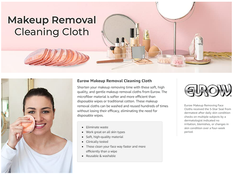 Eurow Makeup Removal Cleaning Cloth, Washable and Reusable, 5 by 5 Inches, Coral, Pack of 10(6780)