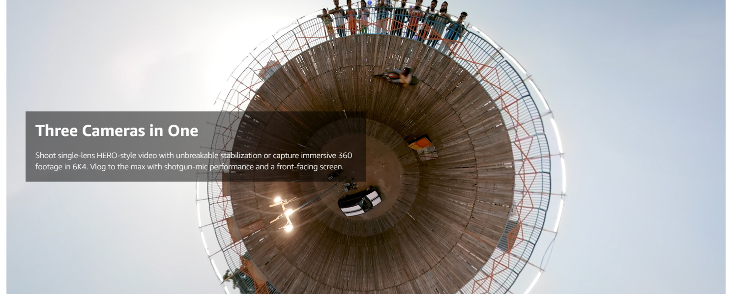 Classic HERO-style skills. Spherical-capture wizardry. Unbreakable stabilization. Make way for MAX, the most creative GoPro ever. Capture traditional GoPro video and photos or shoot 360 footage of everything around you. Snap a panoramic shot without having to pan—just point and click. Choose a digital lens to capture your footage exactly how you imagine it. And with six mics onboard, you get immersive 360 audio and the best sound we’ve ever delivered.