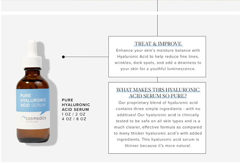 NATURAL & ORGANIC HYALURONIC ACID SERUM- Improve skin texture and brightness with intense moisture and balance. Hydrating facial moisturizer with 100 percent pure hyaluronic acid serum formula.