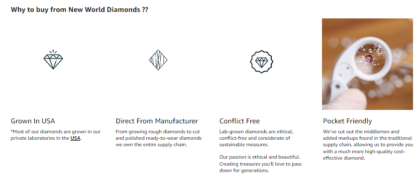 Proudly located in the USA, New World Diamonds are grown in-house at our private laboratory. We own our entire supply chain allowing us to provide you with a much more high-quality cost-effective product.