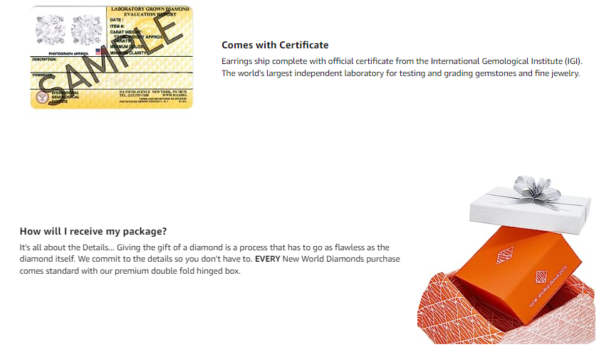 Earrings ship complete with official certificate from the International Gemological Institute (IGI). The world's largest independent laboratory for testing and grading gemstones and fine jewelry.