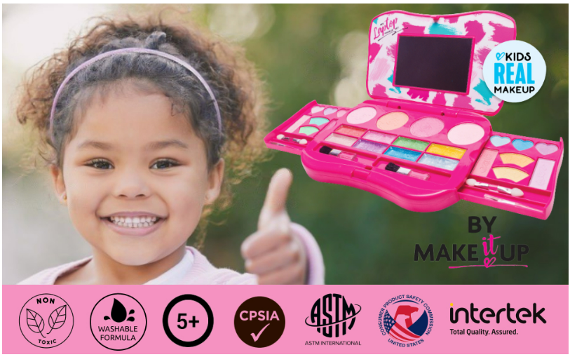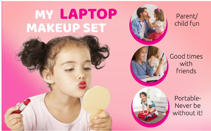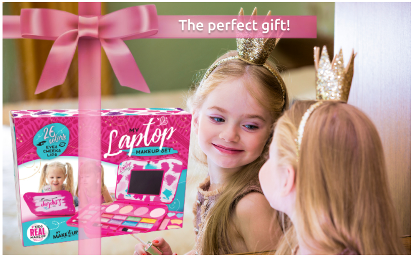 MAKE IT UP - My First Makeup Set for 5+ Year Old Young Girls (Laptop Design) - Integrated Foldable Makeup Palette with Mirror & Secure Closing - Easily Washable, Non-Toxic - Safety Tested - Pink(6723)