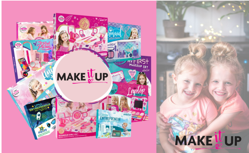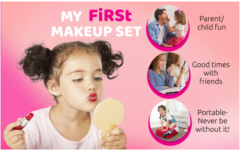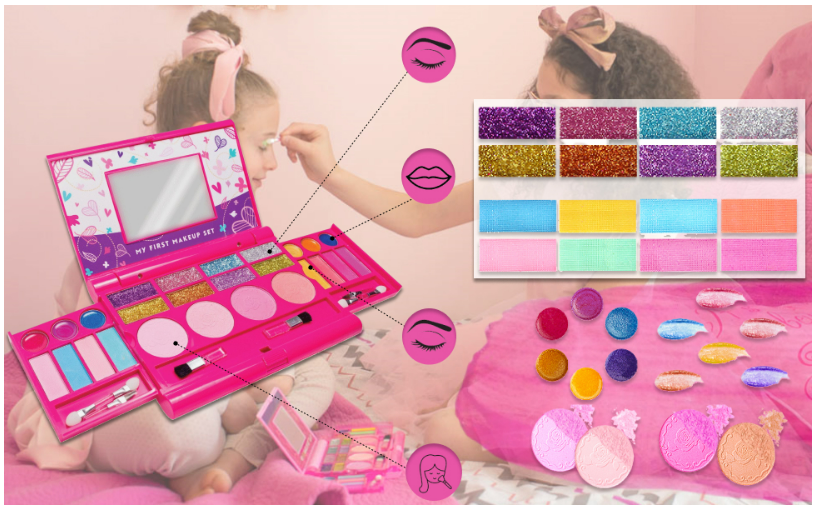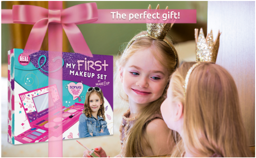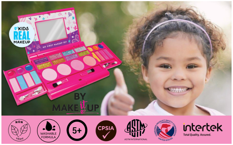 MAKE IT UP - My First Makeup Set for 5+ Year Old Young Girls (Original Design) - Integrated Foldable Makeup Palette with Mirror & Secure Closing - Easily Washable, Non-Toxic - Safety Tested - Pink(6708)