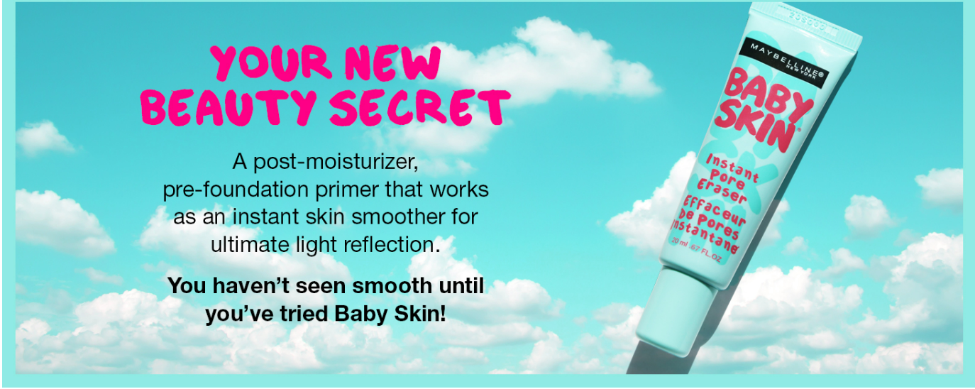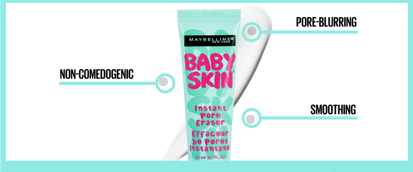 Bye-bye pores You are one second away from smooth, poreless skinch Give your face the perfect face makeup base with Maybelline New York’s iconic Baby Skin Face Primer. The instant skin smoother will erase the look of pores in seconds leaving the skin with a soft matte finish. Our makeup artists conspired with our research labs to create a lightweight and breathable formula that lets makeup glide on and blend beautifully for professional results. The Baby Skin blur cream can be worn alone or under a foundation for a mistake-proof poreless smooth skinch.