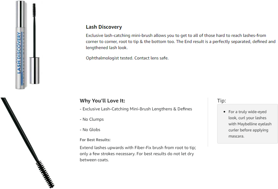 Exclusive lash-catching mini-brush allows you to get hard-to reach lashes - from corner to corner, root to tip and the bottom, too. Lengthens and defines lashes. No clumps or globs. Contact lens safe and hypoallergenic. Waterproof; also available in washable formula.
