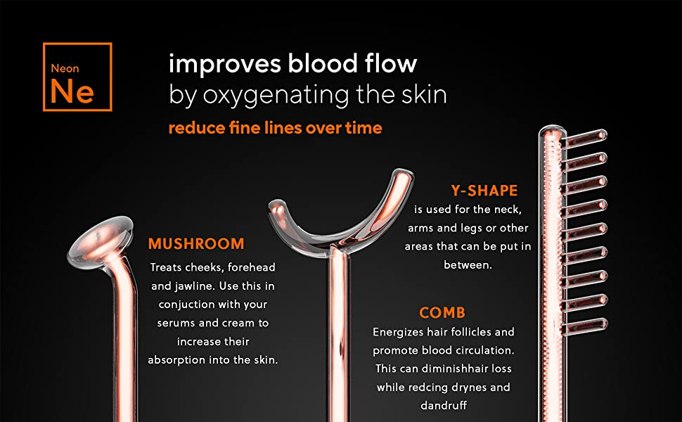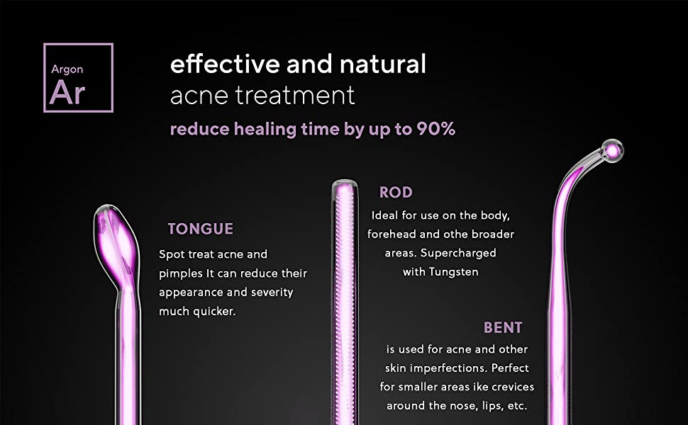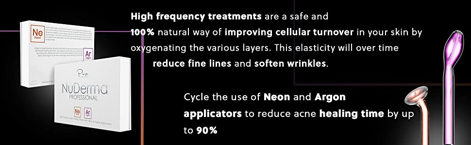 Boost Your Skin With Argon & Neon – The NuDerma Professional skin therapy wand includes a total of 6 beauty wands including 3 all new Argon powered applicators and applicators supercharged with Tungsten for improved effectiveness. Use the natural healing power of Argon and Neon high frequency to boost your overall skin profile