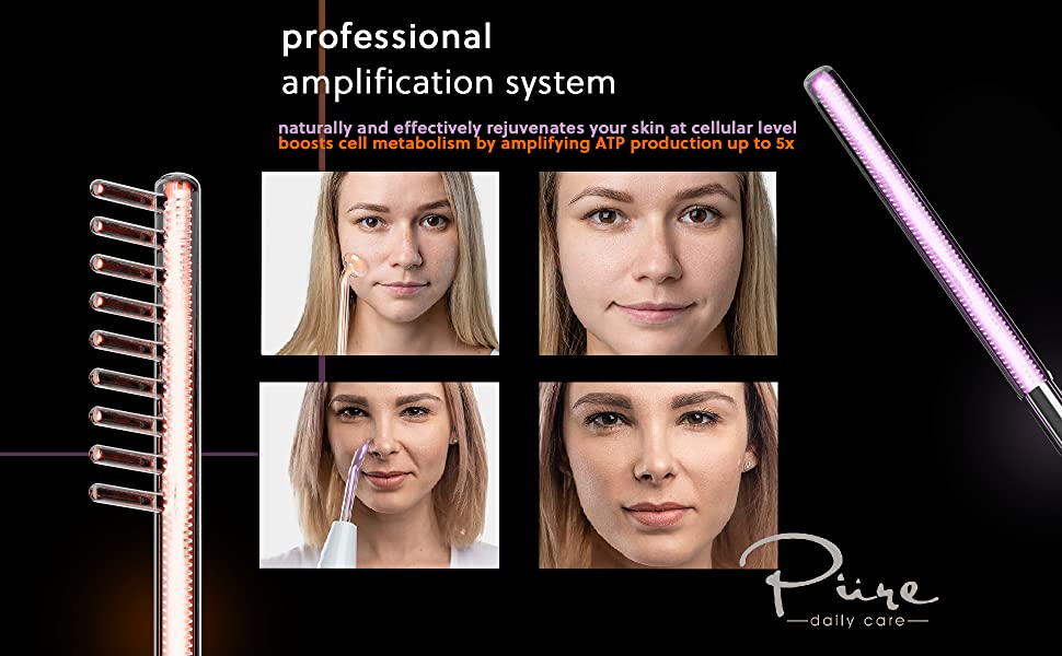 Specialized Applicators for Total Body Sessions- NuDerma Professional features specialized glass applicators like a Y-shaped wand that can conveniently be applied to areas like your arms and neck or a Rod applicator that works with broader areas like cheeks and the forehead. A supercharged comb wand is perfect to energize the scalp and hair.