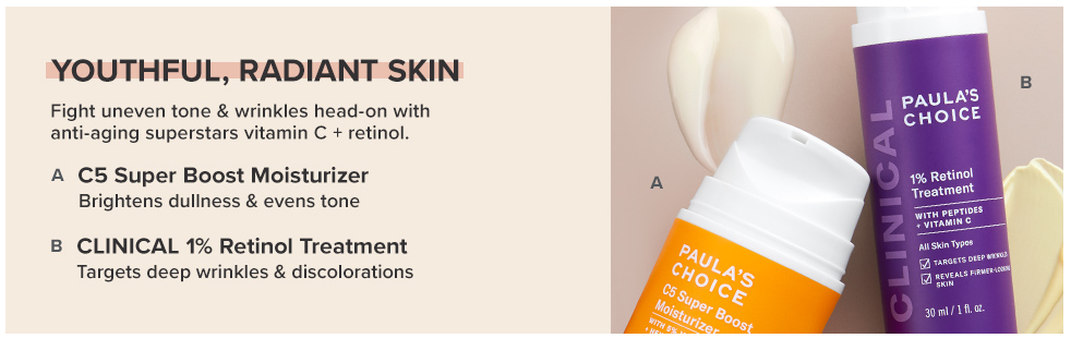 Paula's Choice CLINICAL 1% Retinol Treatment + C5 Super Boost 5% Vitamin C Moisturizer, for Discoloration, Deep Wrinkles & Dark Spots, Fragrance-Free & Paraben-Free, Set of 2(4283)