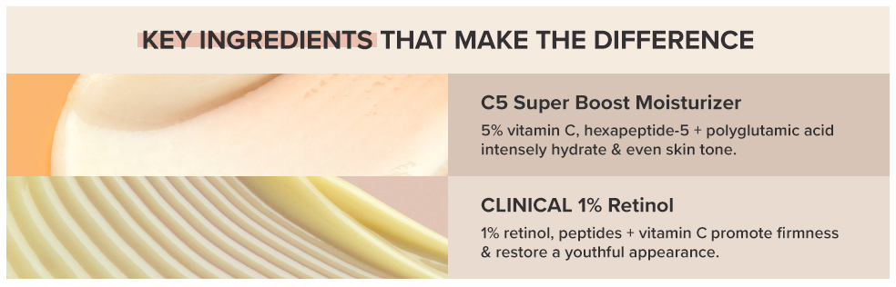 C5 SUPER BOOST MOISTURIZER: This vitamin C daily face moisturizer hydrates & treats in one multi-active step. Antioxidants boost glow, firmness & even tone while polyglutamic acid + squalene lock moisture in for 24 hours straight.
