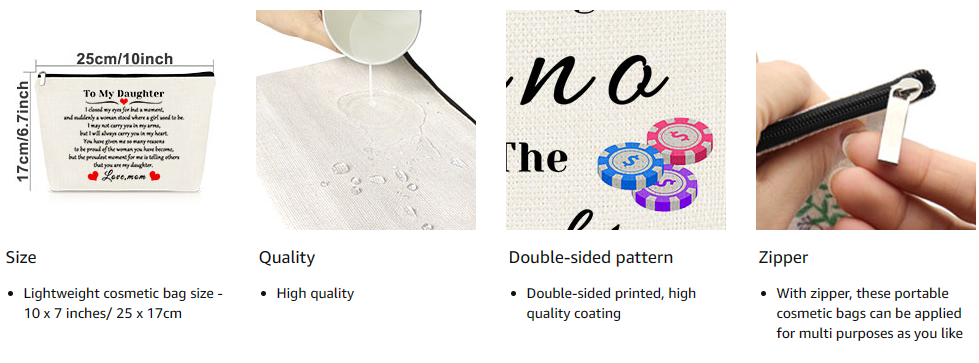 PA Inspirational Gifts:Double-sided printied, high quality coating, Lightweight cosmetic bag size - 10 x 7 inches/ 25 x 17cm;This make up bag is big enough to hold your day-to-day makeup, like lipstick, lip gloss, makeup brushes, eyeshadow and so on. Keeps all your stuff nice ,easily fits into your woman’s handbag, or carry.