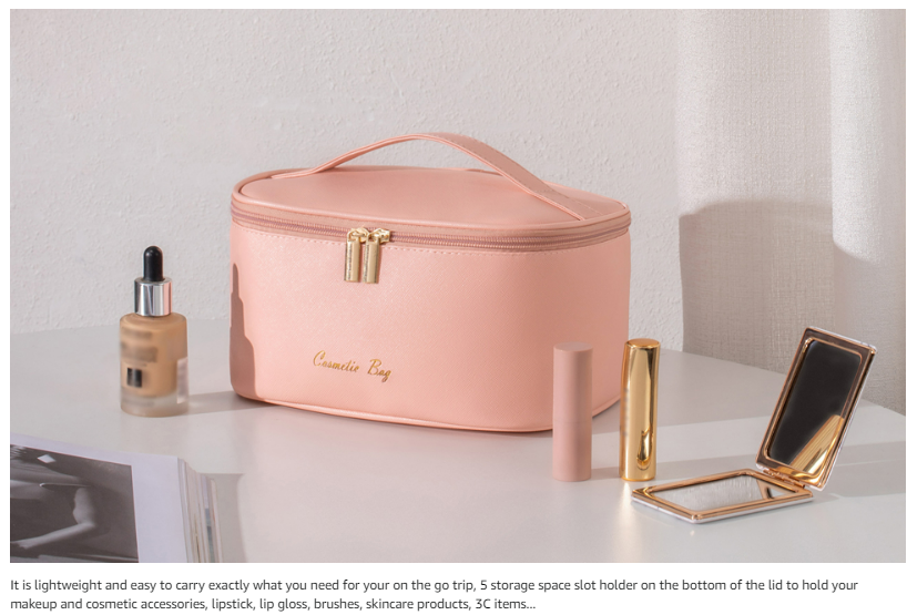 ?ROOMY ENOUGH: Medium Good size, nice and tall, big enough for all your make up,lotion, tweezers, pony tails,hair brush skincare products and even a big mirror; Also as a great toiletry bag easily holds all your travel-size toiletries: electric toothbrush, toothpaste, shampoo, towel etc.