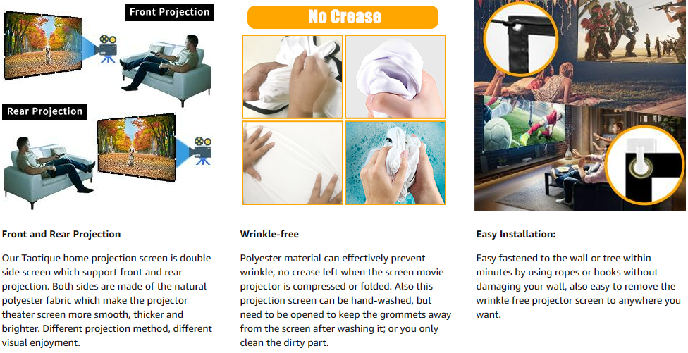Wide Application: home theater, business meetings, propose marriage, exhibitions, conventions, presentations, education, camping and so on.