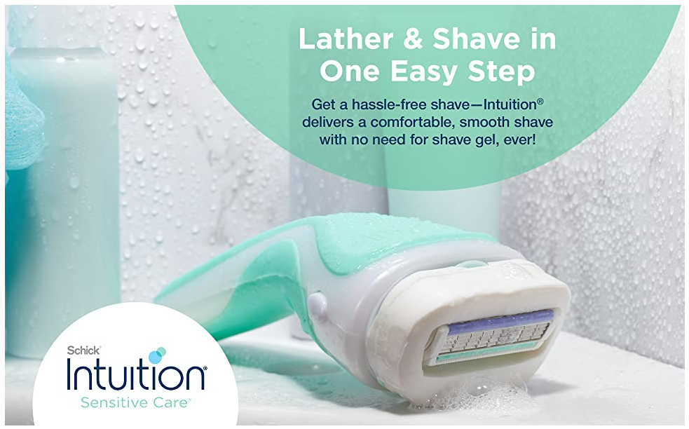 The 6-count Schick Intuition Sensitive Care Razor refill pack includes 6 razor blade cartridges that can fit any Intuition handle. Schick Intuition Sensitive Care women’s razor refills lather and shave in one easy step, with no need for shave gel! Our sensitive skin razor refills are made with natural fragrances and organic aloe. The gentle Sensitive Care formula is dermatologist tested, vegan and hypoallergenic, making it great for sensitive skin. Each smooth-gliding 4-blade cartridge has a pivoting head to hug the contours of your legs and body. Plus, Schick Intuition Razor refills are perfect for first-time shavers, minimizing nicks and cuts.