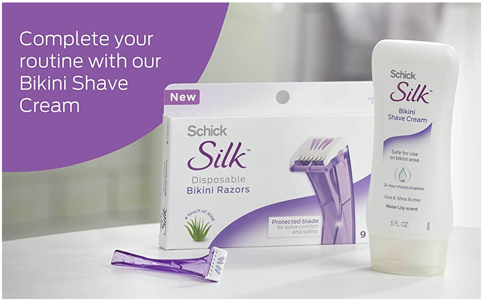 Schick Silk Disposable Bikini Razors are specifically designed to remove pubic hair. These slim, compact pubic hair razors feature a single, protected blade to provide extra comfort and safety while shaving delicate areas. Each bikini razor features 4 lubricating bars with a touch of Aloe, and glide across your skin to help prevent irritation while shaving.