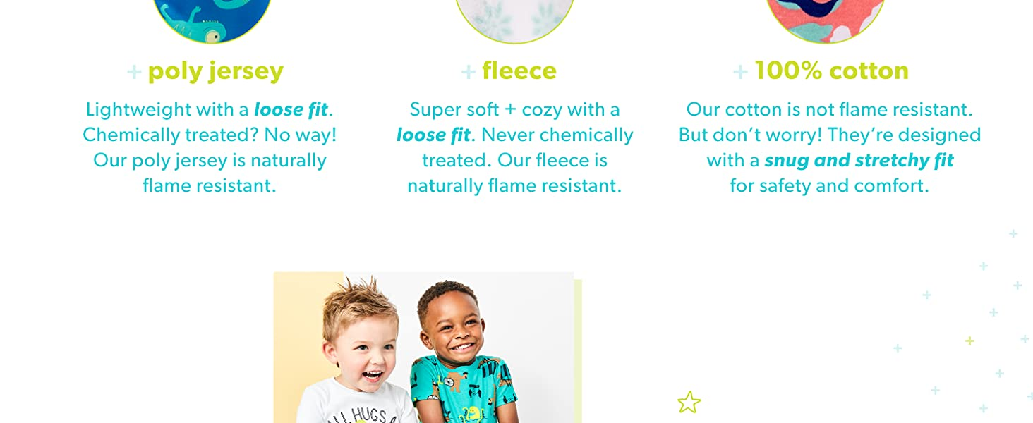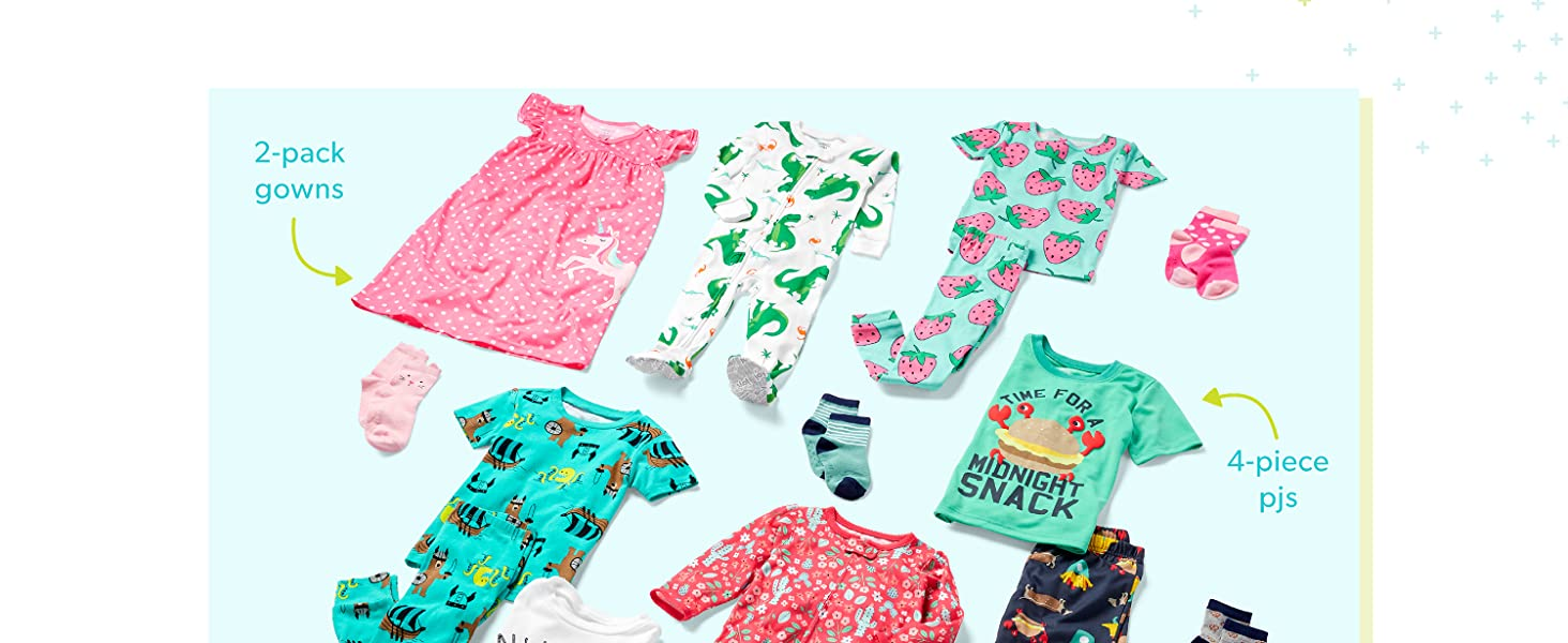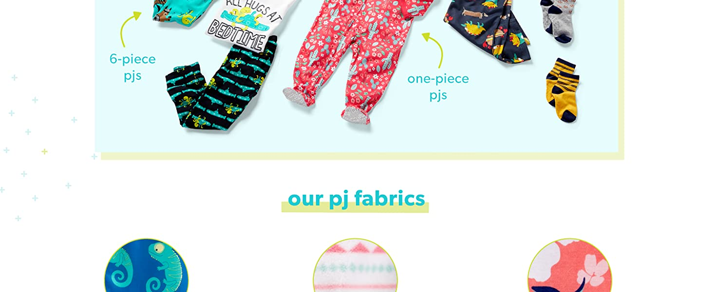 Three sets of footless pajamas featuring fun patterns and appliques.