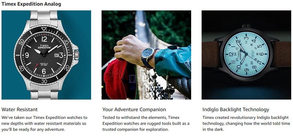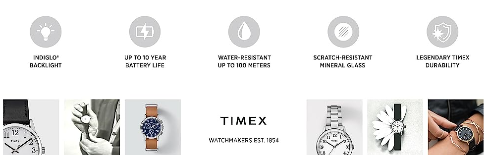 This men's Timex Expedition watch is made from stainless steel and is powered by a quartz movement. It is fastened with a leather strap. The watch also has a date function. Everything you need and nothing you don't.