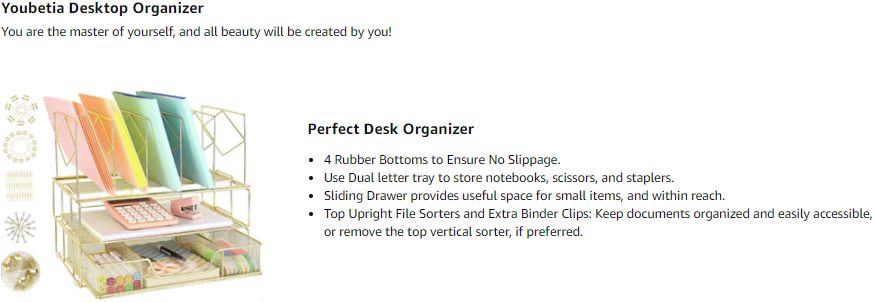 | Special Feature | Desk organizer for office school dorm home, Desk organizer and storage, Book Display & Storage |